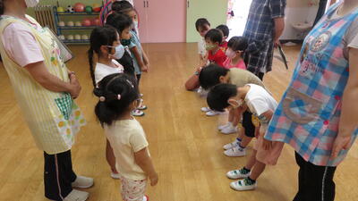 最後に、年少さんから年長さんに1学期お世話になったお礼を言いました。年長さんたち少し照れくさそうでした。
