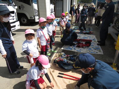 午前中、良い天気の中、市のバスに乗って機動隊の見学に行ってきました。