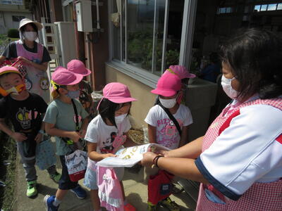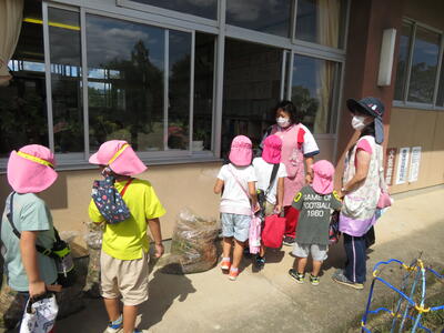 2021年9月10日 13時35分体育館での練習が終わっての帰り道、1年生教室の前を通って、ちゅうりっぷ組さんが各々描いた絵をもって、担任の先生に渡してきました。本来ならば児童に直接渡したいところですがコロナ禍ですので、今回は担任の先生に渡すことにしました。