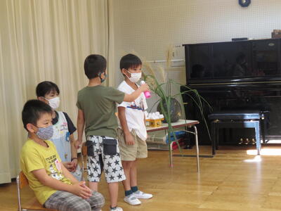 はじめは誕生会です。先月実施が延期されていた誕生会ですが、感染予防を徹底して実施しました。