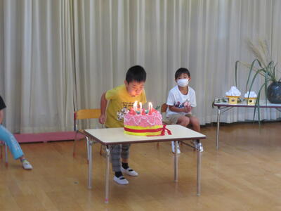 今回は年長さんの3名がみんなからお祝いしてもらいました。