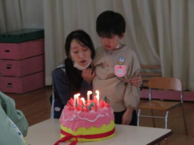 いつものようにインタビューをしたり、お祝いの歌を歌ってローソクの火を消したり、プレゼントをあげたりして楽しい時間を過ごしました。