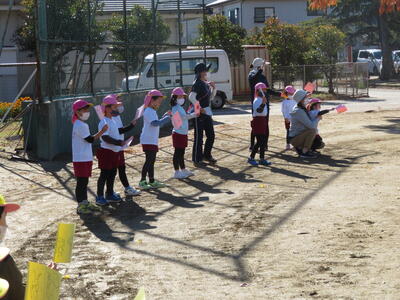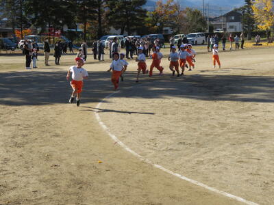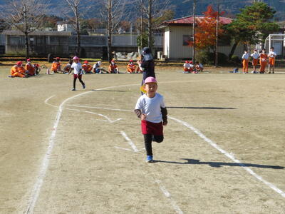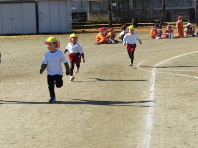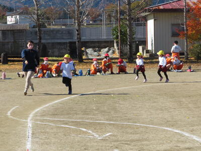 次は幼稚園児が走りました。1人2周。歩かないで頑張って最後まで走り切りました。