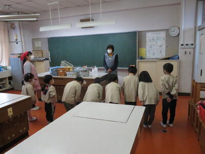 2021年11月22日 17時25分佐倉小学校の家庭科室を借りて、ちゅうりっぷ組が給食試食会を行いました。
