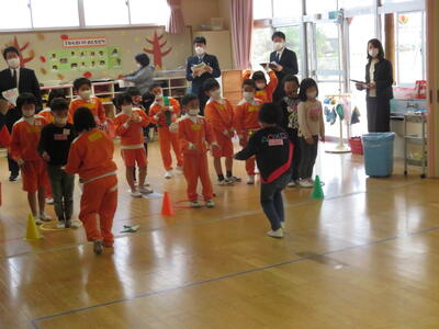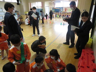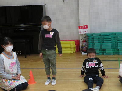 はじめに忍者リレーを行いました。たいぞうたちから届いた巻物をもとに、忍者修行です。作戦を練りながら、リレーをしました。