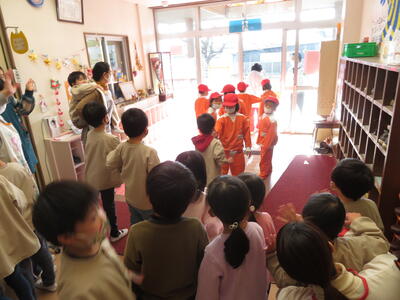 園児たちは突然の訪問に大喜び。