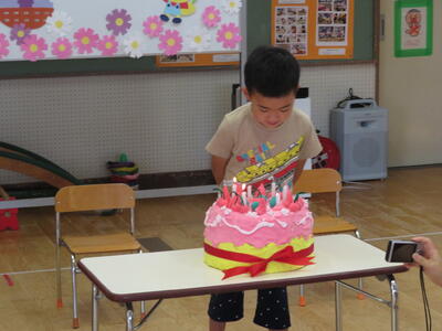 9月生まれの3名(年少2名 年長1名)の誕生会を行いました。