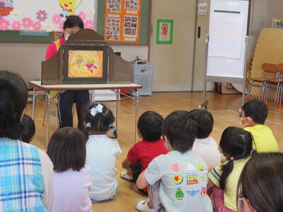 続いて、お月見についての紙芝居をみました。みんな集中して見入っていました。
