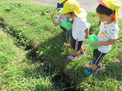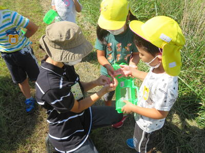 2022年9月26日 14時20分たんぽぽ組さんは、近くの田んぼに虫探しに出かけました。
