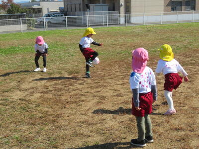 遊び開始! とっても良い天気の中、思う存分遊びました。子どもの体力にはいつも感心させられます。ずうっと動き回っていました。