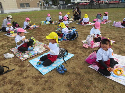遊んだあとは、待ちに待ったお弁当です。みんないっぱい動いたのでお腹はペコペコ。