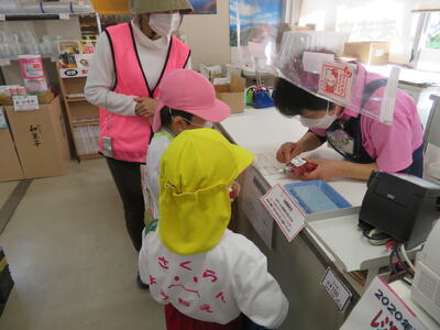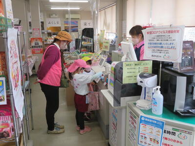 入店して、目的の品を見つけ、レジに持って行って預かったお金(300円)で払い、お釣りをもらって、「ありがとうござました」と言って店を出る。