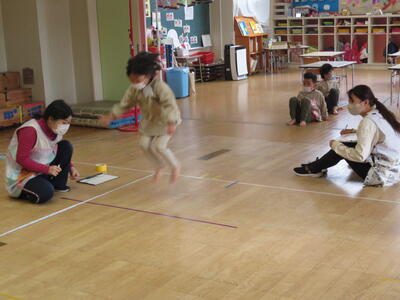 園児たちは少しでも記録を伸ばそうと、真剣に取り組んでいました。