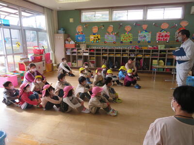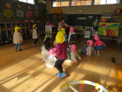 2022年11月7日 10時56分不審者が幼稚園の敷地内に入ってきたとの想定で避難訓練を行いました。