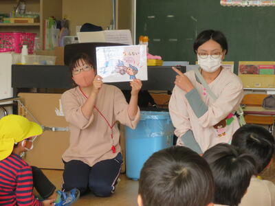 避難が終わり、不審者に出会ったらどうするか、この前警察の方に教えていただいた「いかのおすし」を確認しあいました。
