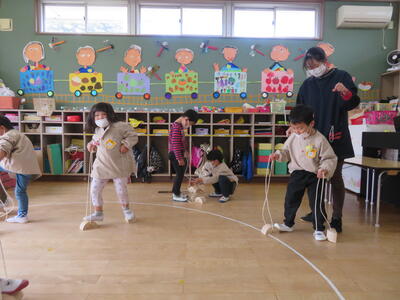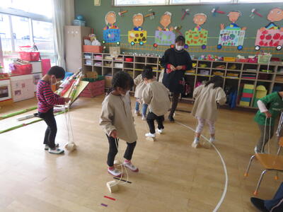 年少さんたちは、運動会でもらった道具で遊びました。
