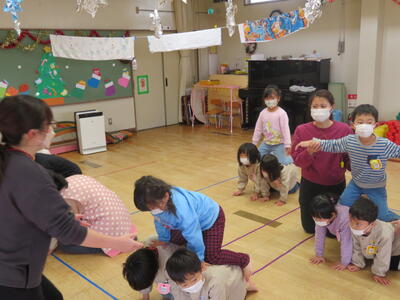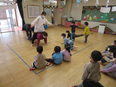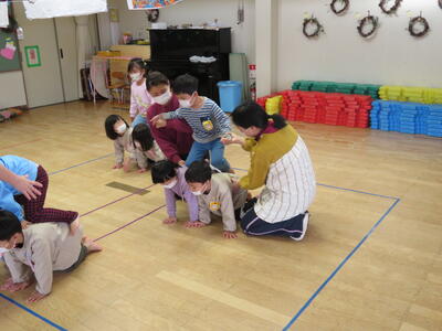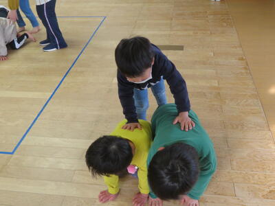 次は子どもたちの探検隊です。年少年長混合で隊を編成しました。
