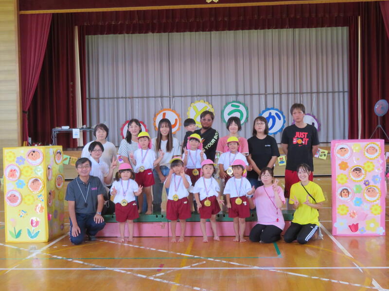 集合写真 その4 2022年12月29日 14時35分 ◇9月 運動会 みんな誇らしげにメダルを首にかけています ◇10月 あおむしさんと一緒に 巨大サツマイモ収穫! 遠足に行く途中 吾妻山をバックに 次回が最後 11・12月です。