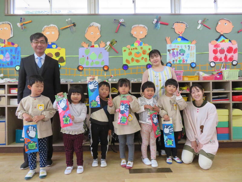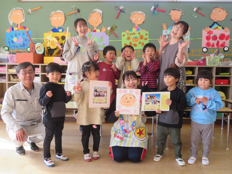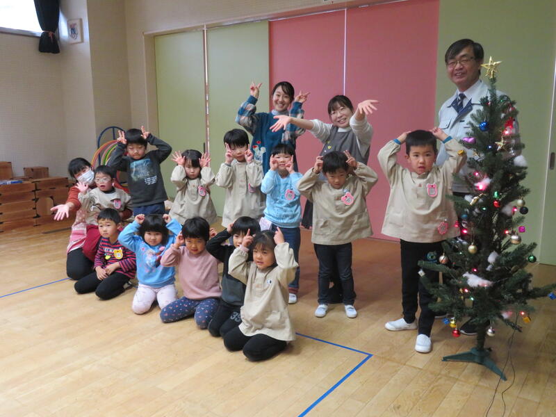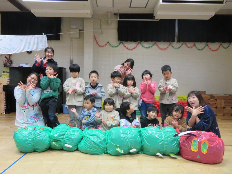 雪だるまと一緒に 力を合わせるとこんなに大きい雪だるまができました!