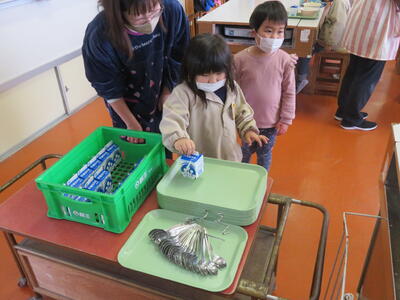 年少さんも、牛乳だけ自分でもらいました。