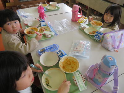 今日は片付けにも挑戦。年長 年少全員が、自分で片付けることができました。残菜もほとんど出ませんでした。