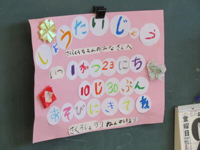 来週の月曜日に佐倉小学校との交流を行いますが、今日1年生が招待状を届けてくれました。