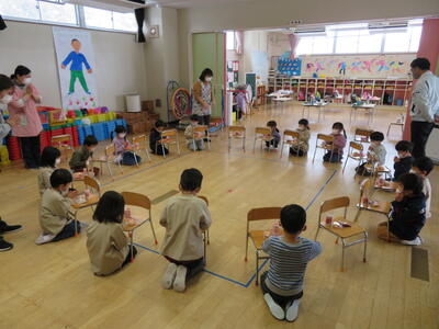 お誕生会の後は、おやつタイムです。みんなでおいしくいただきました。