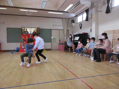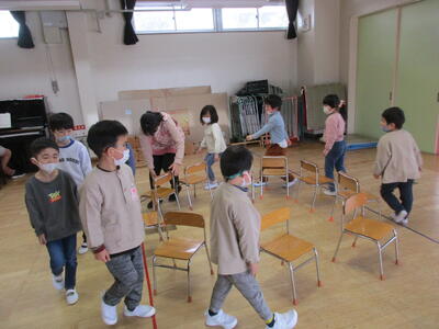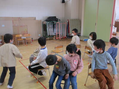 ちゅうりっぷ組さんたちは、遊戯室で椅子取りゲームを楽しみました。
