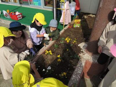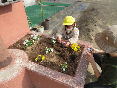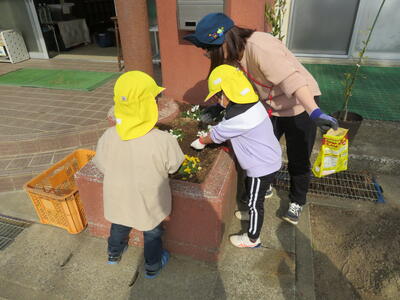 花を移植しました! 2023年3月7日 15時14分 暖かい日が続いているので、年少さんの保育室で水耕栽培していたヒアシンスやクロッカスを花壇に移植しました。 移植作業を始めると、園庭で遊んでいた体験入園に来ていた子どもたちも見学に来ました。 来年も花が咲くといいですね。