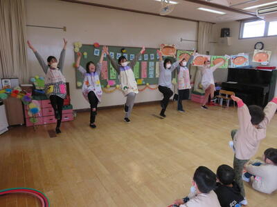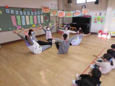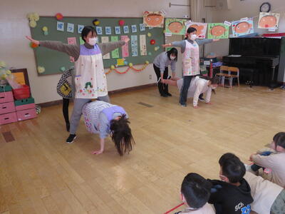 2023年3月10日 09時45分次は先生方の出し物です。大人版ダンシングピラミッドを披露しました。