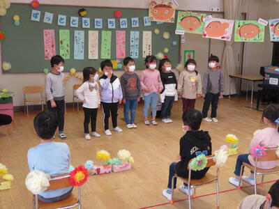 今回の会は、たんぽぽ組さんたちの大活躍で、 ありがとうの気持ち 小学校へ行っても頑張ってねの気持ち いつまでも友達でいてねの気持ち にあふれる素晴らしい会でいた。ちゅうりっぷさんたちの心の中にとっても楽しい思い出として残ってくれることと思います。