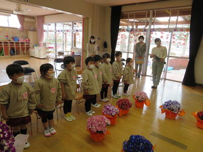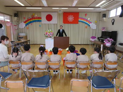 2023年4月7日 13時45分入園式の前に、新ちゅうりっぷ組のみんなは始業式に参加しました。