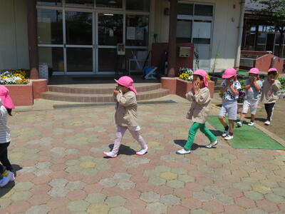 今回は地震発生ののち、園近くの建物が火災になったとの想定です。