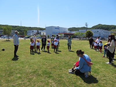 次は親子体操です。お家の方と一緒に楽しく体を動かしました。