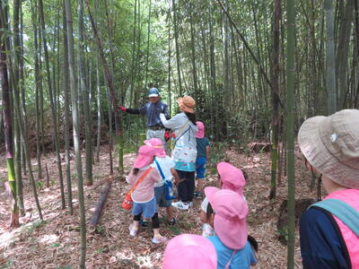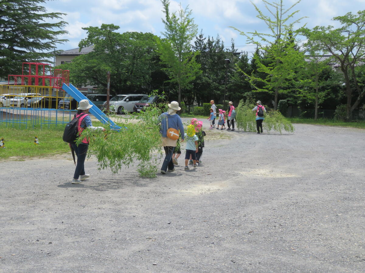 2023年6月26日 10時56分七夕飾りに使う竹をいただきにみんなで出かけました。