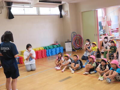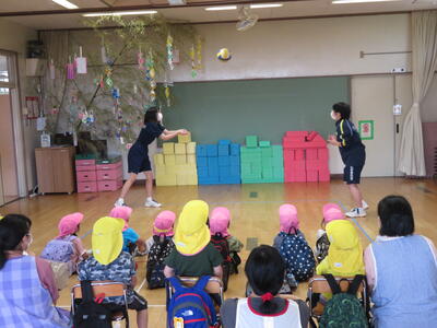 せっかくなので、部活の技を披露してもらいました。バレーボールです。上手なパスにみんな驚きの表情でした。