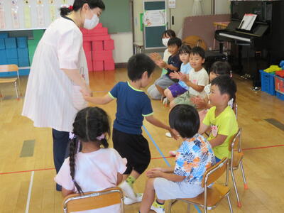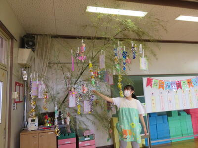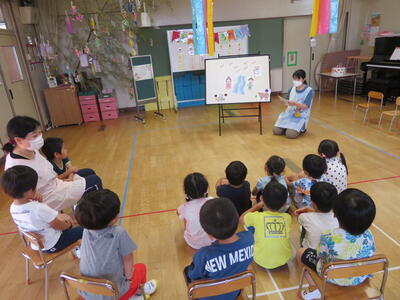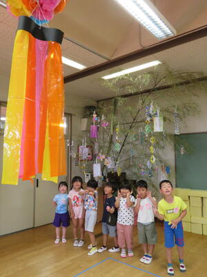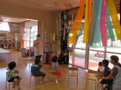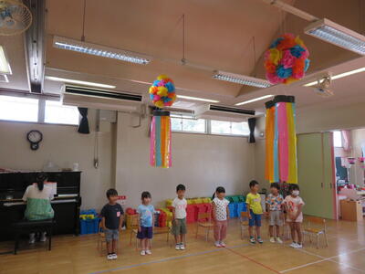 幼稚園では7月うまれ年少児1名の七夕誕生会を行いました。