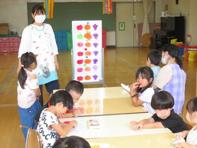 リンゴとミカンとブドウに色を塗る作業です。