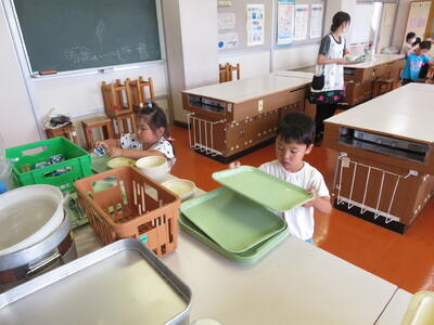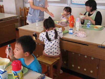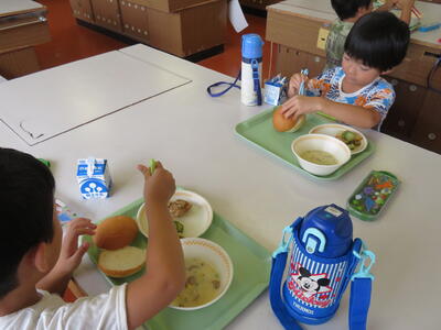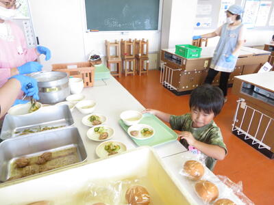 2023年7月14日 15時37分今日は、佐倉幼学校家庭科室で給食を食べました。