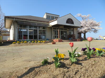 桜とちゅうりっぷ満開の幼稚園