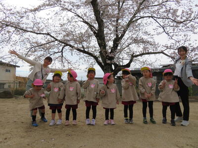 4月7日 ちゅうりっぷ組さん 満開の桜をバックに