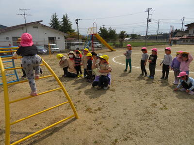 4月12日 ちゅうりっぷ組さんたんぽぽ組さんに遊具の使い方伝授