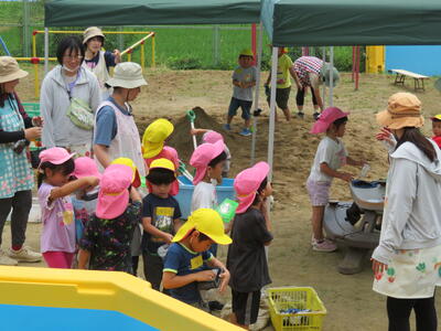 7月13日 庭塚幼稚園との交流 2回目 お土産たくさんいただきました!