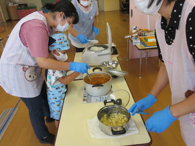 2023年8月21日 12時42分夏休み最終日、預かり保育のみんなでカレーパーティーを行いました。
