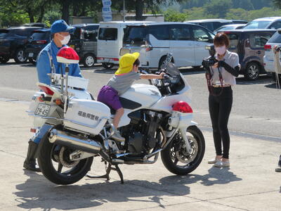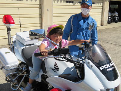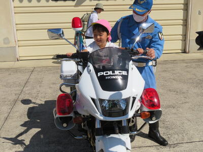 全員白バイに乗せてもらうことができました。初めて乗る白バイの大きさにみんなびっくりしていました。