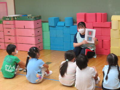 2023年9月22日 12時28分ちゅうりっぷ組さんは、実習生と「信号ゲーム」をして遊びました。
