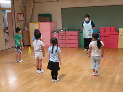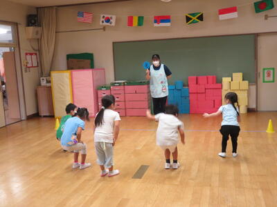 園児たちはルール説明をしっかり聞き、すぐにゲームがスタートしました。1回終わると「もう1回やりたい」と声があがり、何度か行いました。
