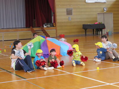 はじめに、バルーンです。バルーンを操るのでちゅうりっぷさんですが、たんぽぽさんも参加します。