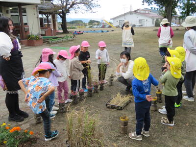 今日は稲刈りもしました。刈った稲はしばらく干しておきます。