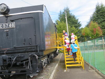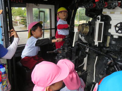 滑り台やSLでも遊びました。SLは運転席にたくさんのメーターや機械があるのにびっくりでした。